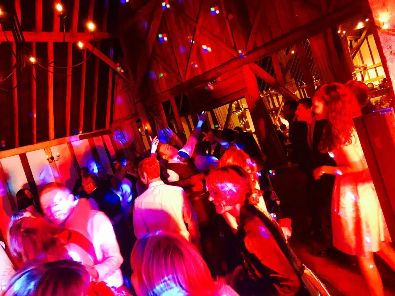 Clock Barn weddings typically produce a fantastic party atmosphere. Guests of all ages gather in the barn once the evening reception begins, and the combination of classic party favourites, sing-along tracks and modern hits helps keep the dance floor busy throughout the night.